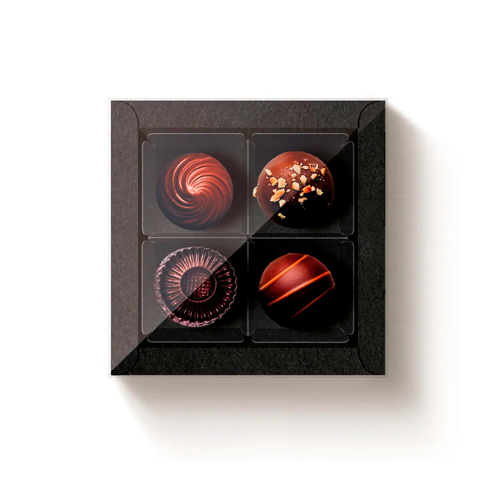 Caixa Quadrada Preta C/Tampa Cristal para 4 Doces - 10 unidades | Cromus Profissional