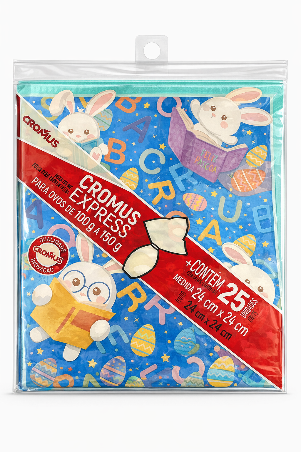 O Saco Express 24x24cm da Cromus é a escolha ideal para quem busca praticidade e um acabamento encantador na hora de embalar ovos de Páscoa, doces e lembrancinhas. Com estampa delicada em tom azul, ele valoriza o produto e deixa a apresentação muito mais atrativa.